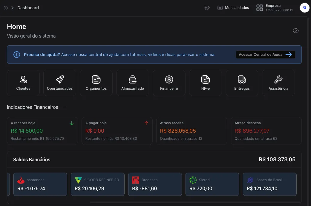 Fica muito mais fácil conferir recibos, entender o impacto de atrasos e enxergar o resultado do mês sem abrir fatura por fatura.
